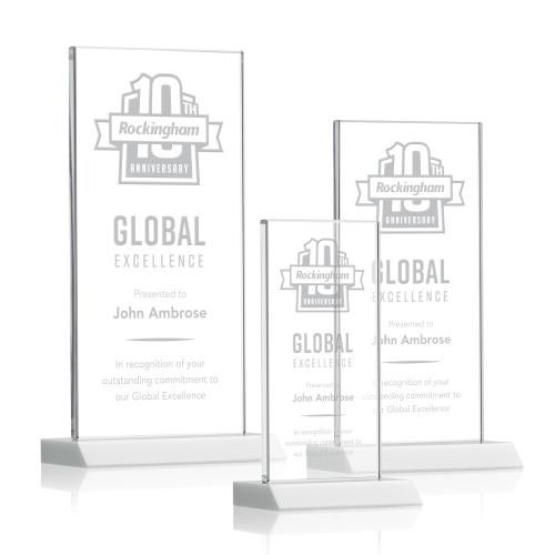 Of the Crystal Awards, this beautiful Bolton Award - White is a great choice. (AWS2631-W) The statuesque Bolton Award features an exquisite Starfire Crystal mounted upright on a mitered base. Available in 3 sizes and 8 colored bases.
