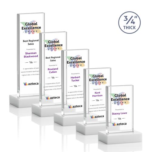 Of the Crystal Awards, this beautiful Holmes VividPrint™ Award - White is a great choice. (AWV2171-W) The Holmes Starfire Crystal VividPrint Award features a tall Starfire Upright mounted on a sturdy 1" thick crystal base. With a large imprint area, your colorful words of encouragement will be remembered for years to come.
