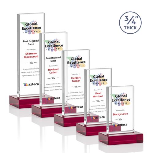 Of the Crystal Awards, this beautiful Holmes VividPrint™ Award - Red is a great choice. (AWV2171-R) The Holmes Starfire Crystal VividPrint Award features a tall Starfire Upright mounted on a sturdy 1" thick crystal base. With a large imprint area, your colorful words of encouragement will be remembered for years to come.