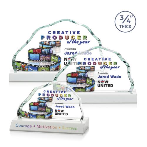 Of the Crystal Awards, this beautiful Highbridge VividPrint™ Award - White is a great choice. (AWV2471-W) The Starfire Crystal Highbridge VividPrint Award is a magnificent .75" thick beveled iceberg that forms an incredible frame for your mountainous achievement. The colored crystal base refracts through the edges of the award for a dazzling show of ivory reflections. 2nd Position Etch Optional.