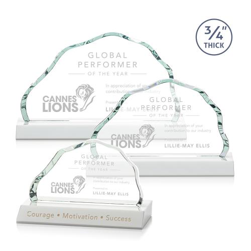 Of the Crystal Awards, this beautiful Highbridge Award - White is a great choice. (AWS2471-W) The Starfire Crystal Highbridge Award is a magnificent .75" thick beveled iceberg that forms an incredible frame for your mountainous achievement. The colored crystal base refracts through the edges of the award for a dazzling show of ivory reflections. 2nd Position Etch Optional.