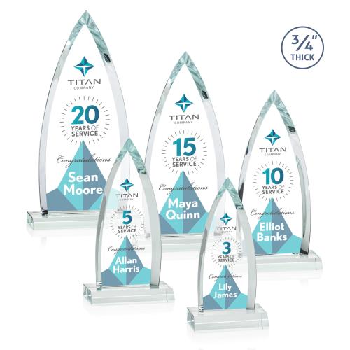 Of the Crystal Awards, this beautiful Shildon VividPrint™ Award - Clear is a great choice. (AWV1770) The striking Shildon Award is a 3/4" thick Starfire arrowhead with deep dramatic bevels to recognize a spectacular achievement. Mounted on a starfire crystal base and includes full-color VividPrint. Second position etch optional.