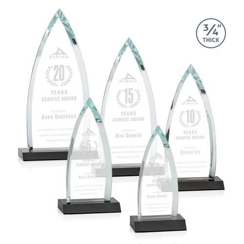 Of the Crystal Awards, this beautiful Shildon Award - Black is a great choice. (AWS1770-K) The striking Shildon Award is a 3/4" thick Starfire arrowhead with deep dramatic bevels to recognize a spectacular achievement. Mounted on an ebony crystal base. Second position etch optional.