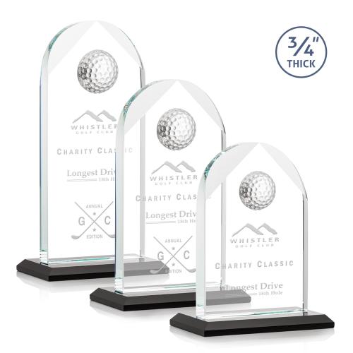 Of the Crystal Awards, this beautiful Blake Golf Award - Black is a great choice. (GLF2351-K) The Starfire Crystal Blake Golf Award features an elegant beveled arch with an Optical Crystal Golf Ball mounted at the top. A brilliant sparkling display of achievement for your day on the green.