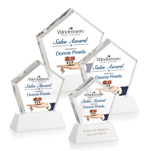 Of the Crystal Awards, this beautiful Genosee VividPrint™ Awardon Base - White is a great choice. (OPV6112-W) The Genosee Award on Base features a sparkling faceted extra-thick Optical Crystal pentagon mounted on your choice of 8 distinct clear or colored tapered base. Second Position Etch & Colorfill Optional. A brilliant award to recognize an exceptional performance.