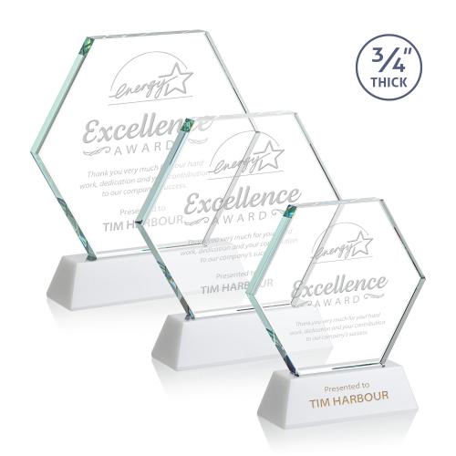 Of the Crystal Awards, this beautiful Pickering Award on Newhaven - White is a great choice. (AWS15862-W) The Pickering Starfire Crystal Award features a brilliant 0.75" thick hexagon mounted on a tall tapered Clear or Colored Optical Base to display your remarkable achievement proudly and prominently. Second Position Etch & Colorfill Optional.