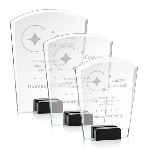 Of the Crystal Awards, this beautiful Lola Award - Black is a great choice. (AWS4041-K) Striking Starfire Crystal Lola Award features a tapered and curved top, enhanced with a beautiful bevel and propped between two blocks of colored crystal for an stunning recognition piece to honor a special achievement.