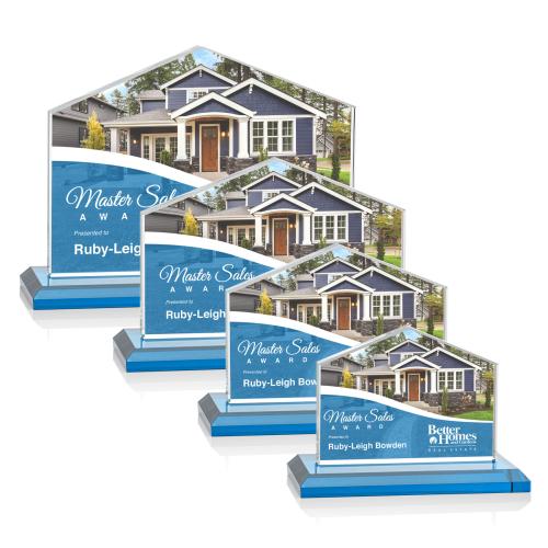 Of the Crystal Awards, this beautiful Domicile VividPrint™ Award - Sky Blue is a great choice. (AWV2621-S) Recognize your top selling realtor or mortgage broker with the sparkling Domicile Starfire Crystal Award. These awards are perfect for recognizing excellence in the real estate industry a great option for annual award programs for realtors and brokerages alike. Mounted on a beveled base in your choice of 8 distinct colors.