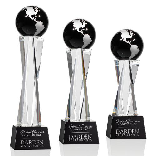 Of the Crystal Awards, this beautiful Havant Globe Award - Black/Silver is a great choice. (OPG271-KS) The Havant Globe Award is a mesmerizing Optical Crystal Trophy that will dazzle its recipient and proudly showcase their far-reaching achievement. Featuring an Optical Ebony Globe, perched atop a sparkling Crystal Pillar and mounted on a matching colored tapered base. 1 Colorfill included.