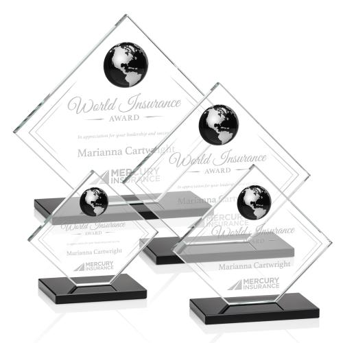Of the Crystal Awards, this beautiful Ferrand Globe Award - Black/Silver is a great choice. (OPG381-KS) The Ferrand Globe Award features a Starfire Crystal Diamond adorned with a magnificent solid ebony optical globe with continents etched and colorfilled silver. Complimented with a matching ebony base to create the perfect award to recognize a far reaching achievement or a successful international initiative.