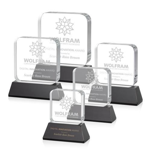 Of the Crystal Awards, this beautiful Flamborough Award on Base - Black is a great choice. (OPT1471-K) The Flamborough Award on base features a thick optical crystal block with rounded edges that sits atop a magnificent black optical crystal base. Great for recognizing achievement and innovation in the tech and app world, or any corporate recognition program. Second position etch and colorfill optional.