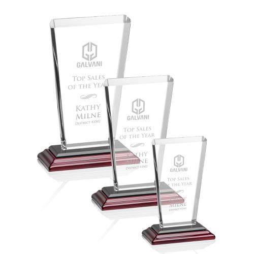 Of the Crystal Awards, this beautiful Chatham Award - Rosewood is a great choice. (AWS3702-N) Our extraordinary beveled Starfire angular award is combined with Rosewood Albion base, the latest trend in designer glass, to update a classic look with chic style.