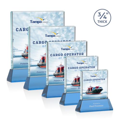 Of the Crystal Awards, this beautiful Terra VividPrint™ Award on Newhaven - Sky Blue is a great choice. (AWV17381-S) A solid pane of thick 0.75" Starfire Crystal is mounted on a tall tapered Starfire base in your choice of 8 distinct colors. A great choice for corporate recognition and to honor an exceptional achievement. 2nd position VividPrint optional.