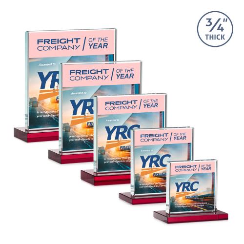 Of the Crystal Awards, this beautiful Terra VividPrint™ Award - Red is a great choice. (AWV1731-R) A solid pane of thick 0.75" Starfire Crystal is mounted on a flat edged base in your choice of 8 distinct colors. A great choice for corporate recognition and to honor an exceptional achievement.