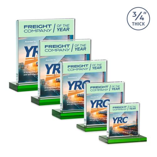 Of the Crystal Awards, this beautiful Terra VividPrint™ Award - Green is a great choice. (AWV1731-G) A solid pane of thick 0.75" Starfire Crystal is mounted on a flat edged base in your choice of 8 distinct colors. A great choice for corporate recognition and to honor an exceptional achievement.