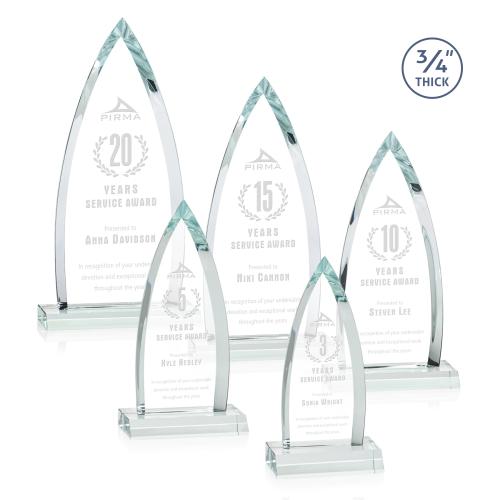 Of the Crystal Awards, this beautiful Shildon Award - Clear is a great choice. (AWS1770) The striking Shildon Award is a 3/4" thick Starfire arrowhead with deep dramatic bevels to recognize a spectacular achievement. Mounted on a clear crystal base. Second position etch optional.