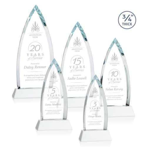 Of the Crystal Awards, this beautiful Shildon Award on Newhaven - White is a great choice. (AWS17750-W) The striking Shildon Award is a 3/4" thick Starfire arrowhead with deep dramatic bevels to recognize a spectacular achievement. Mounted on a thick ivory crystal base. Second position etch optional.