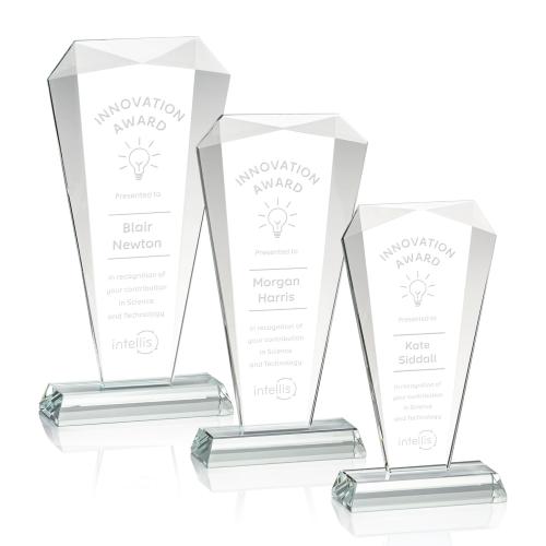 Of the Crystal Awards, this beautiful Foster Award is a great choice. (AWS5551) The Foster award charms with its triangular facets along the top and sides, embodying the classic look of a jewel made to be witnessed.