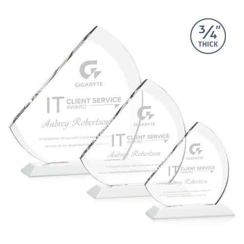 Of the Crystal Awards, this beautiful Nantucket Award - White is a great choice. (AWS2421-W) The contemporary Nantucket Award is made from thick 3/4" Starfire Crystal with contrasting deep bevels that rise to a flat edge. This striking work of recognition is mounted on a solid white crystal base and is a magnificent award to honor a top performer.
