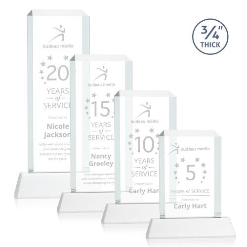 Of the Crystal Awards, this beautiful Dalton Award on Newhaven - White is a great choice. (AWS0950-W) The Dalton Starfire Crystal Award features a thick 3/4" tower with mitered edges all around that create a sparkling frame for your message of recognition. Available with your choice of 8 distinct and vivid colored Newhaven bases, the Dalton award radiates light throughout the room and showcases your special achievement. Second Position Etch & Colorfill Optional.