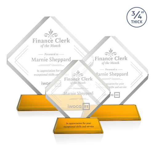 Of the Crystal Awards, this beautiful Toulon Award on Newhaven - Amber is a great choice. (AWS15662-A) The majestic Toulon VividPrint award is a brilliant diamond-shaped award with a dramatic beveled frame and clipped edges. Ideal for recognizing an exceptional performer or commemorating a momentous milestone or event. Available on your choice of clear or colored tapered Newhaven base. Second Position Etch & Colorfill Optional.