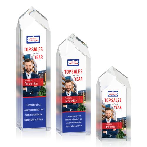 Of the Crystal Awards, this beautiful Clarington Tower VividPrint™ Award is a great choice. (OPV1212) The Clarington Tower VividPrint Award is a magnificent thick Optical Crystal with a raised peak. A superb recognition piece to reward a monumental achievement. Let your message POP with full-color VividPrint! Also available with Optical or Black Crystal bases, see associated items.