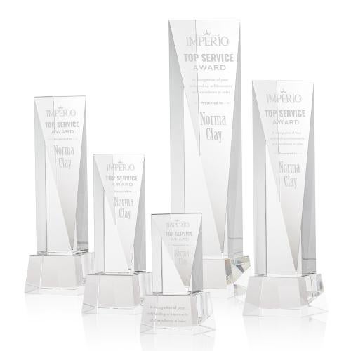 Of the Crystal Awards, this beautiful Easton Award on Base - Clear is a great choice. (OPT3000-C) The Optical Crystal Easton Award is a grand gesture of appreciation. This extraordinary award features an elongated triangular face with ample space for deep etching your message. Mounted on an Optical Crystal square base. Second-position etch and colorfill are optional. Packaged in a black satin-lined presentation gift box.