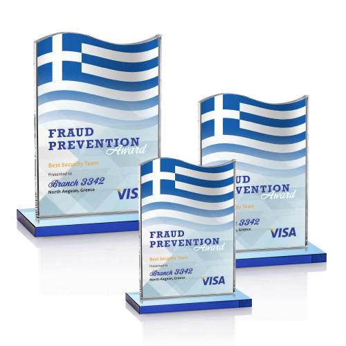 Of the Crystal Awards, this beautiful Unity VividPrint™ Award - Sky Blue is a great choice. (AWV3541-S) Recognize a special achievement with our Starfire Crystal Unity VividPrint Award on your choice of clear or colored crystal base. Featuring a curved top that can be used to depict your waving flag and create a magnificent monument of achievement recognition. Let your message POP! with full-color VividPrint.