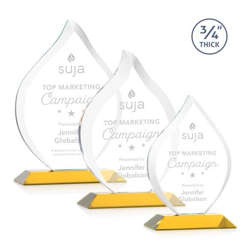 Of the Crystal Awards, this beautiful Worthington Flame Award - Amber is a great choice. (AWS7101-A) The Stunning Worthington Award is a Starfire Crystal Flame with deep bevels on a mitered base. A brilliant award to recognize exceptional achievements. Packaged in a black satin-lined presentation gift box. Available on your choice of 9 distinct colored bases.