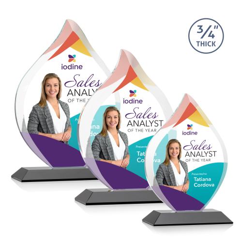 Of the Crystal Awards, this beautiful Worthington VividPrint™ Award - Black is a great choice. (AWV7101-K) The Stunning Worthington VividPrint Award is a Starfire Crystal Flame with deep bevels on a mitered base. A brilliant award to recognize exceptional achievements. Packaged in a black satin-lined presentation gift box. Available on your choice of 9 distinct colored bases.