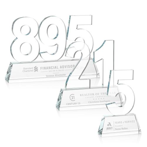Of the Crystal Awards, this beautiful Milestone Optical Award - Clear is a great choice. (OPT12311) Recognize a monumental achievement with our exquisite Optical Crystal Milestone award. These impressive awards are perfect for recognizing a personal or corporate achievement or a landmark event. A great way to honor a significant moment. Available with single, double or triple digits, these awards can recognize Milestones #0-999. Available with Deep Etching or full-color VividPrint. Second, Third, and Fourth position deep etch on numbers is optional.