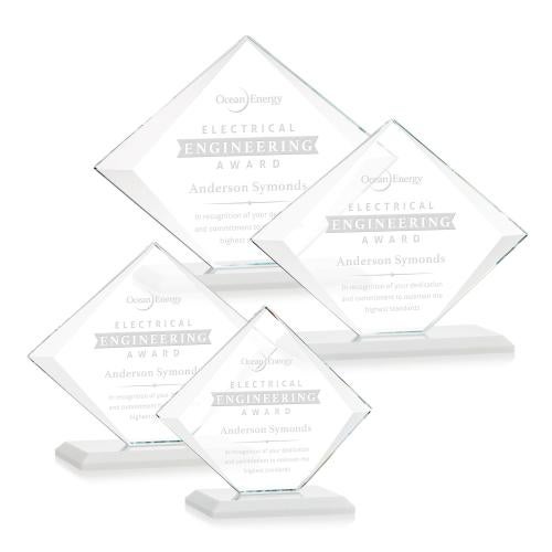 Of the Crystal Awards, this beautiful Griffith Award - White is a great choice. (AWS8401-W) The Elegant Griffith Award made of Starfire Crystal features beveled edges that taper off towards the top and bottom and is mounted on a beveled base. A brilliant award to recognize exceptional achievements. Packaged in a black satin-lined presentation gift box. Available in your choice of 8 distinct colored bases.