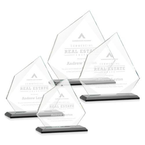 Of the Crystal Awards, this beautiful Lexus Award - Black is a great choice. (AWS8421-K) The Starfire Crystal Lexus Award embodies true elegance with its unique geometric design and subtle bevels that form a diamond-shaped window into your words of achievement. This Stunning Budget Busting Award is mounted on a beveled base and is perfect for employee appreciation in any business sector! Packaged in a black satin-lined gift box. Available in your choice of 8 distinct colored bases.