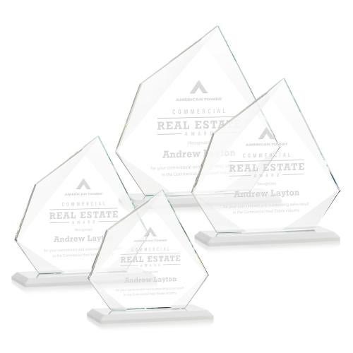 Of the Crystal Awards, this beautiful Lexus Award - White is a great choice. (AWS8421-W) The Starfire Crystal Lexus Award embodies true elegance with its unique geometric design and subtle bevels that form a diamond-shaped window into your words of achievement. This Stunning Budget Busting Award is mounted on a beveled base and is perfect for employee appreciation in any business sector! Packaged in a black satin-lined gift box. Available in your choice of 8 distinct colored bases.