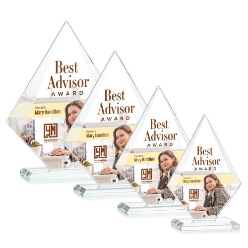 Of the Crystal Awards, this beautiful Rideau VividPrint™ Award - Clear is a great choice. (AWV8451) The Starfire Crystal Rideau VividPrint Award embodies true elegance with its tapered beveled edges. This Stunning Budget Busting Award is mounted on a beveled base and is perfect for employee appreciation in any business sector! Other styles are available. Packaged in a black satin-lined gift box. Available in your choice of 8 distinct colored bases.