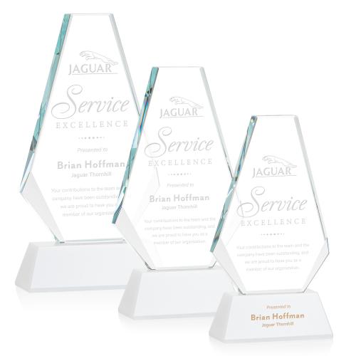 Of the Crystal Awards, this beautiful Kingsley Award on Newhaven Base - White is a great choice. (OPT5031-W) The Optical Crystal Kingsley Award is flawless in its symmetrical design, with its squared top that slants down toward the base which features beautifully beveled edges. Mounted on a tall tapered optical base in your choice of 8 distinct colors. The Kingsley is the perfect award fit for recognizing a spectacular achievement! Second position etch and colorfill optional.