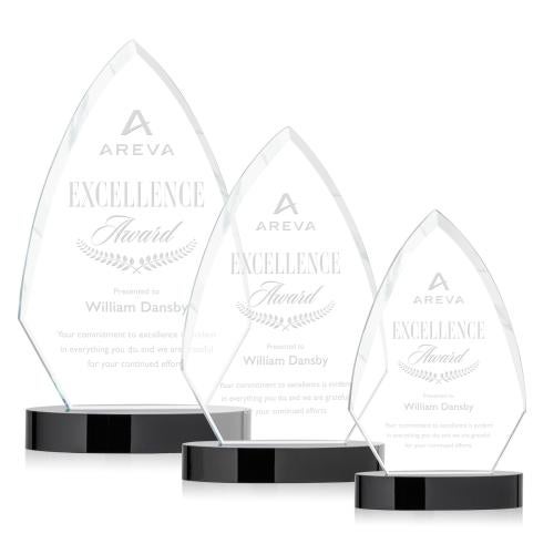Of the Crystal Awards, this beautiful Idaho Award - Black is a great choice. (AWS6931-K) Featuring an arrowhead shape with beautiful side bevels that meet at the top, this majestic Starfire Crystal award was made to recognize one's true dedication to excellence. Comes complete with your choice of ebony or sapphire round base. Packaged in a black satin-lined gift box.