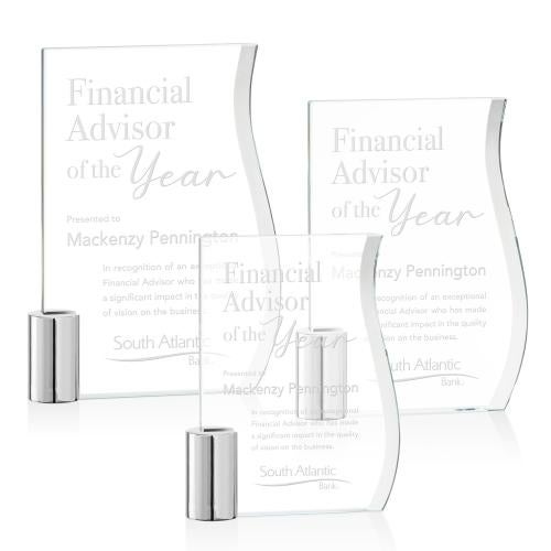 Of the Crystal Awards, this beautiful Holbrook Award is a great choice. (AWS8891) The Starfire Crystal Holbrook Award features a subtle S-curved beveled edge supported by a chrome cylinder. An elegant and unique award to appreciate an incredible achievement in any industry! Packaged in a black satin-lined presentation gift box.