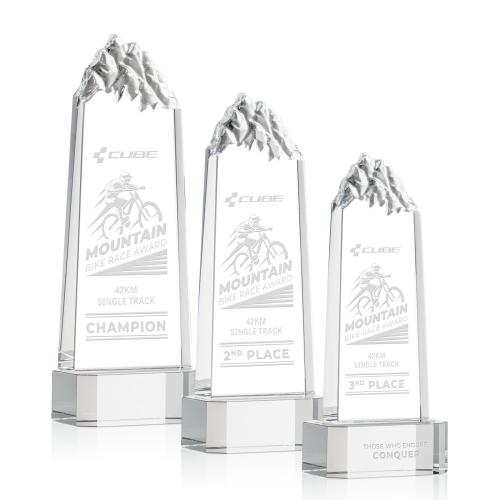 Of the Crystal Awards, this beautiful Himalayas Tower Award on Base - Clear is a great choice. (OPT7571-C) The Himalayas Tower Award is for the individual who exceeds limits and accepts every challenge to get to the top! This freestanding thick Optical Crystal Tower features chiseled mountain peaks at the top of the award. Complete with a sapphire, emerald, ebony, or clear thick Optical Crystal base. Second position etch and colorfill optional.