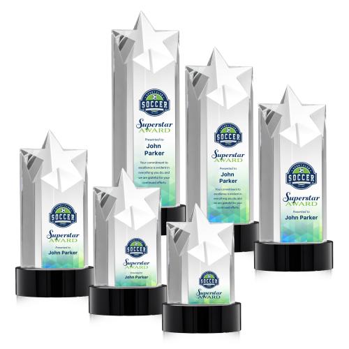 Of the Crystal Awards, this beautiful Berkeley VividPrint™ Award on Stanrich Base - Black is a great choice. (OPSV361-SK) The Berkley Star VividPrint Award on Optical Crystal Base is an inspiring monument to recognize a rising achievement. Reward an exceptional star performance with this pillar of crystal recognition. Bases available in Sapphire, Emerald, Ebony or Clear. Packaged in a black satin-lined gift box.