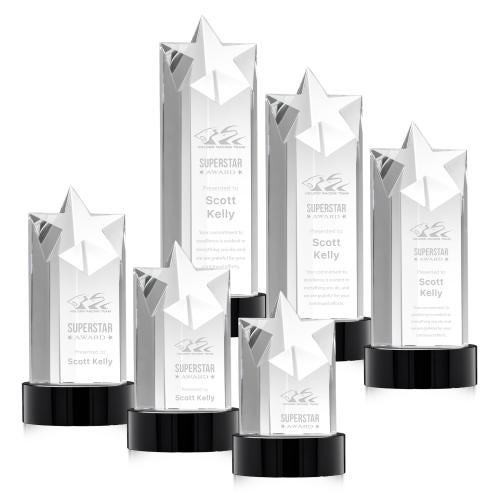 Of the Crystal Awards, this beautiful Berkeley Star on Stanrich Base - Black is a great choice. (OPS361-SK) The Berkley Star Award on Optical Crystal Base is an inspiring monument to recognize a rising achievement. Reward an exceptional star performance with this pillar of crystal recognition. Bases available in Sapphire, Emerald, Ebony or Clear.