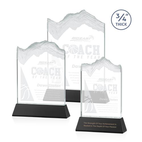 Of the Crystal Awards, this beautiful Kilimanjaro Award on Newhaven - Black is a great choice. (AWS86161-K) The stunning Kilimanjaro award features deep carved and frosted peaks in 3/4" thick Starfire Crystal. Mounted on the tall tapered Optical Crystal Newhaven Base. A perfect award for a momentous achievement. 2nd position etch and color optional.