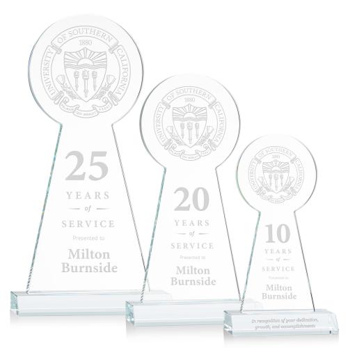 Of the Crystal Awards, this beautiful Laidlaw Tower Award - Clear is a great choice. (AWS5301) The Laidlaw Tower Award features beautiful Starfire Crystal with a large circle at the top that can be used in a myriad of ways. This multi-purpose award is perfect for sports, years of service or to highlight your brand when recognizing excellence. Mounted on a front-mitered Optical Crystal base in your choice of color. Packaged in a black satin-lined presentation gift box. Second location etch and colorfill optional.