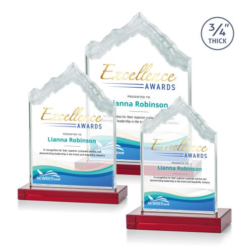 Of the Crystal Awards, this beautiful McKinley VividPrint™ Award - Red is a great choice. (AWV8621-R) The highest mountain peak in North America, Mount McKinley is synonymous with the beauty and awe-inspiring natural wonder that is Alaska, the Last Frontier. Featuring 3/4" thick Starfire Crystal, this stunning award is mounted on your choice of clear or colored thick rectangular Optical Crystal Base. Memorialize your special achievement with a deep etched and frosted monument to one of North America's most stunning peaks. Let your message POP! with full-color VividPrint.