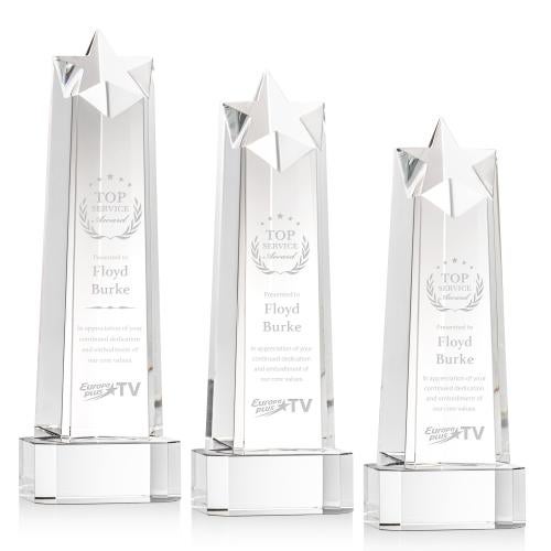 Of the Crystal Awards, this beautiful Delaware Star on Base - Clear is a great choice. (OPS3811-C) The Delaware Star Award on Base is an inspiring monument to recognize a rising achievement. This stunning award features Thick Optical Crystal with a star shape cut out at the top and is mounted on your choice of emerald, sapphire, ebony or clear Optical Crystal Base. Reward an exceptional star performance with this pillar of crystal recognition. Packaged in a black satin-lined presentation gift box.
