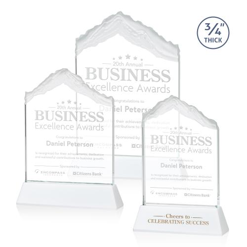 Of the Crystal Awards, this beautiful Everest Award on Newhaven - White is a great choice. (AWS86361-W) The highest mountain in the world, soaring above the clouds, the incredible Everest Award is a stunning Starfire crystal monument with a deep carved peak appearing above your inspirational words of accomplishment. This epic award is perfect for recognizing an exceptional performance or monumental achievement. Mounted on your choice of clear or colored tall tapered Optical Crystal base. Second position etch on base optional.