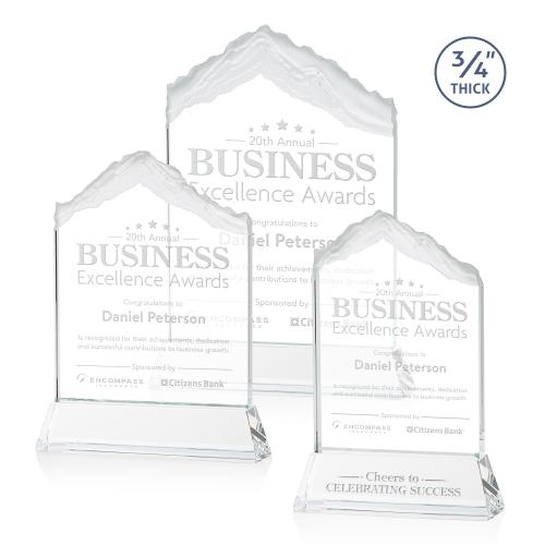 Of the Crystal Awards, this beautiful Everest Award on Newhaven - Starfire is a great choice. (AWS86361) The highest mountain in the world, soaring above the clouds, the incredible Everest Award is a stunning Starfire crystal monument with a deep carved peak appearing above your inspirational words of accomplishment. This epic award is perfect for recognizing an exceptional performance or monumental achievement. Mounted on your choice of clear or colored tall tapered Optical Crystal base. Second position etch on base optional.