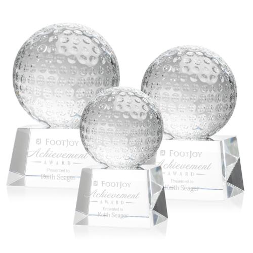 Of the Crystal Awards, this beautiful Golf Ball Award on Robson Base is a great choice. (OPT8502-RC) Our exquisite Optical Crystal Golf Ball Award is a timeless tribute to the passion and skill of golfers. The centerpiece of this masterpiece is a flawlessly crafted Optical Crystal Golf Ball that captures and refracts light in a mesmerizing display. Mounted on a complimenting Optical base for personalization with a Logo or Name. This stunning piece of artistry embodies precision and elegance, making it the perfect award or keepsake for golf enthusiasts, tournaments, or special occasions.