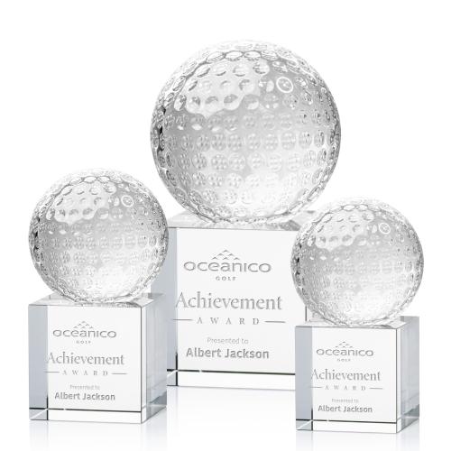 Of the Crystal Awards, this beautiful Golf Ball Award on Granby Base is a great choice. (OPT8502-GB) Our exquisite Optical Crystal Golf Ball Award is a timeless tribute to the passion and skill of golfers. The centerpiece of this masterpiece is a flawlessly crafted Optical Crystal Golf Ball that captures and refracts light in a mesmerizing display. Mounted on a complimenting Optical base for personalization with a Logo or Name. This stunning piece of artistry embodies precision and elegance, making it the perfect award or keepsake for golf enthusiasts, tournaments, or special occasions.