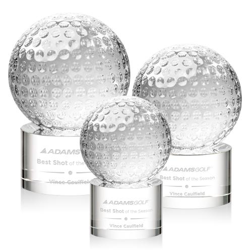 Of the Crystal Awards, this beautiful Golf Ball Award on Marvel Base is a great choice. (OPT8502-MC) Our exquisite Optical Crystal Golf Ball Award is a timeless tribute to the passion and skill of golfers. The centerpiece of this masterpiece is a flawlessly crafted Optical Crystal Golf Ball that captures and refracts light in a mesmerizing display. Mounted on a complimenting Optical base for personalization with a Logo or Name. This stunning piece of artistry embodies precision and elegance, making it the perfect award or keepsake for golf enthusiasts, tournaments, or special occasions.